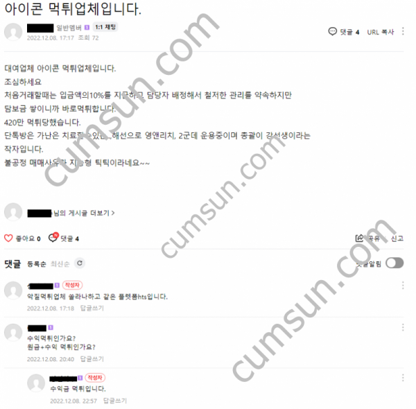 아이콘 대여업체 먹튀입니다