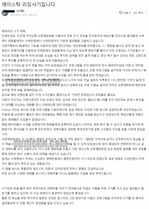 에이*탁 리딩 사기입니다